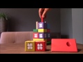 Mooie, grote gekleurde handgemaakte houten blokkenhuis van Ostheimer, bestaande uit losse blokken. De verschillende kleurrijke blokken zijn willekeurig op te bouwen, waardoor het huis elke keer anders wordt en het bouwen leuk blijft.